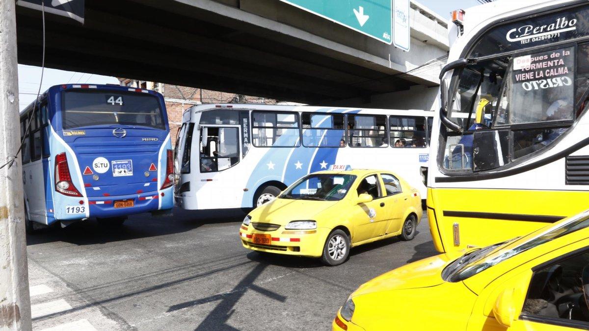 Los buses urbanos y provenientes de Durán dificultan la circulación en la avenida José de Antepara, desde la calle Vicente de Piedrahíta hasta Primero de Mayo.