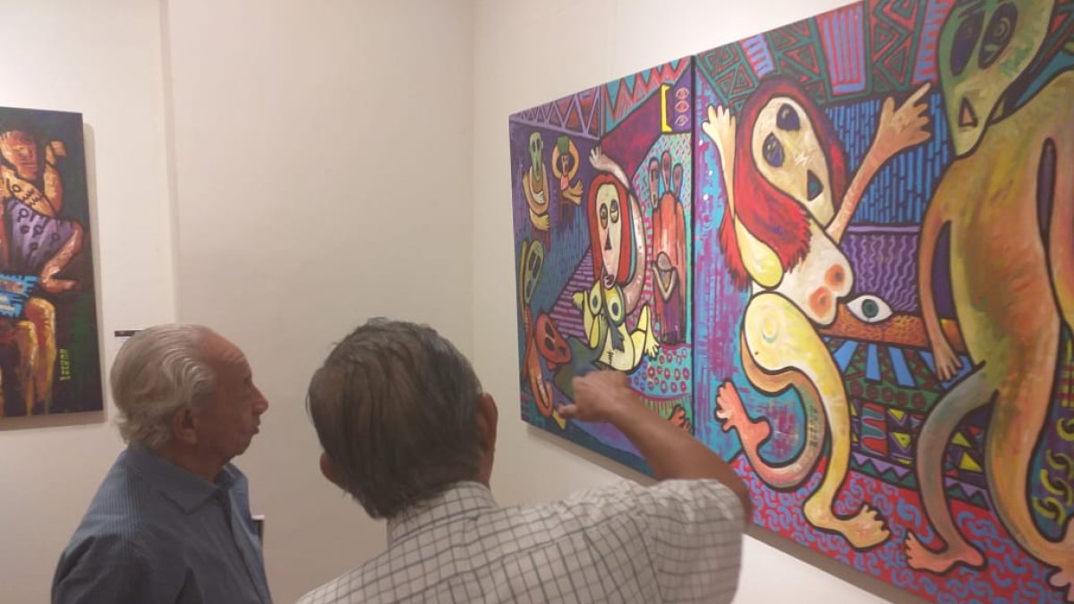 Amigos, familiares del artista asistieron a la apertura de la muestra. Uno de ellos fue su padre, el también artista plástico Eloy Cumbe, quien dio la bienvenida a los asistentes.