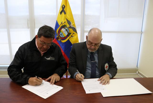El acuerdo de cooperación se firmó con el jefe de la Misión de la Cruz Roja en Ecuador, Leonardo Escobar, en el ECU 911 de Quito.