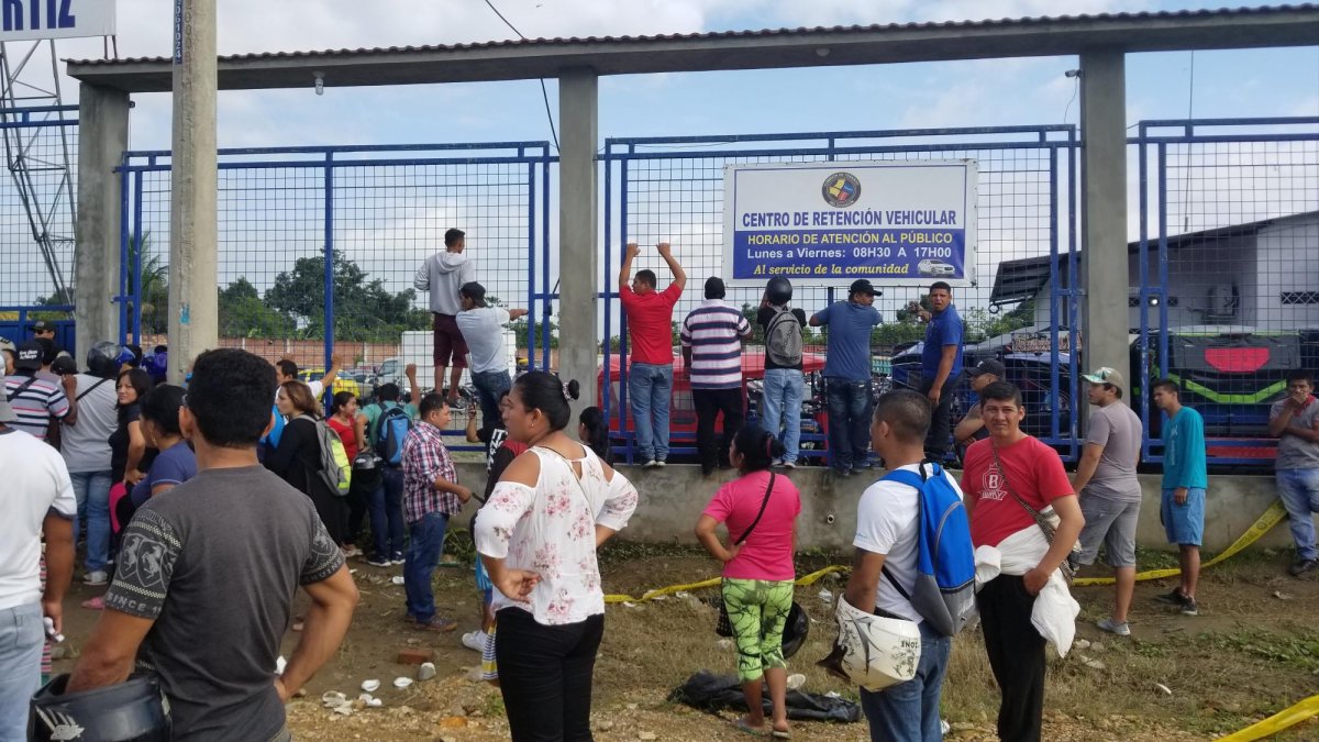 Decenas de personas —algunas con documentos en mano— llegaron la mañana de este viernes 18 de enero de 2019 hasta el Centro de Retención Vehicular, ubicado en la Ruta del Azúcar, en Milagro. En el lugar, exigieron la entrega inmediata de sus motocicletas, luego de que esta madrugada un incendio consumiera más de 100 vehículos livianos allí retenidos.