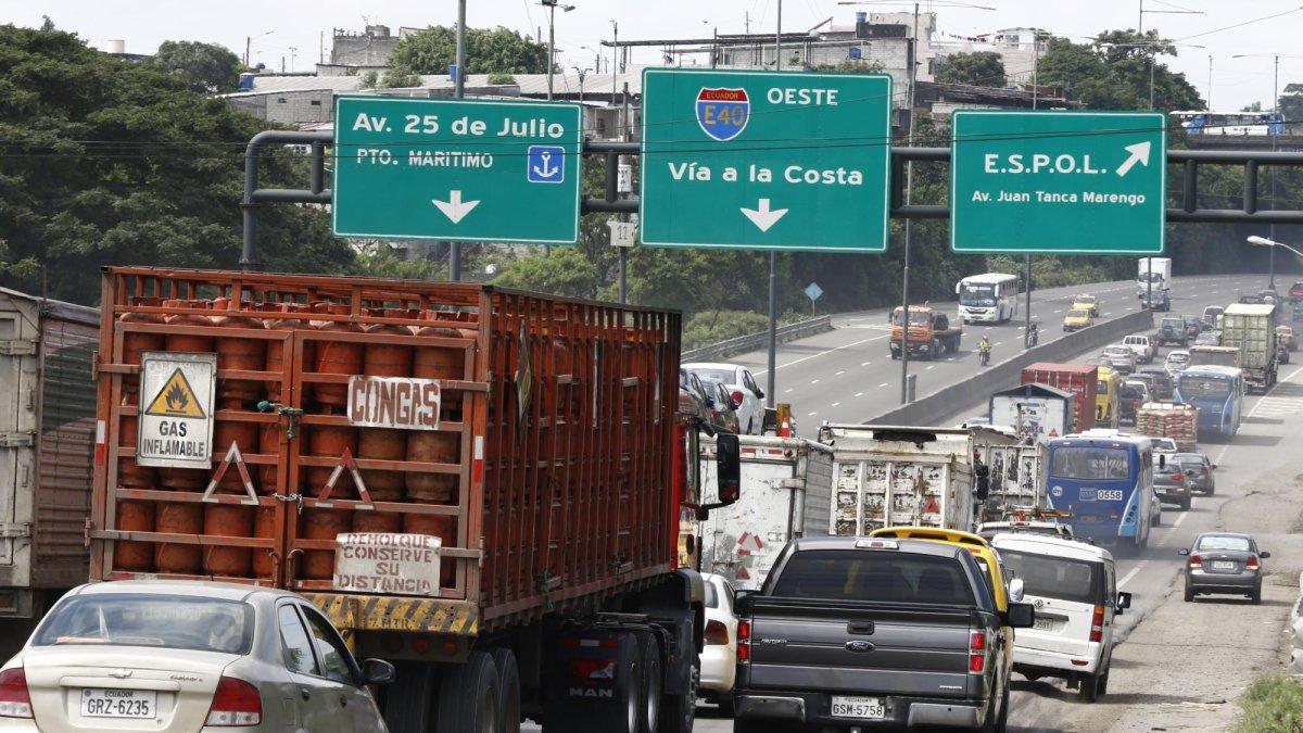 La causa fue el volcamiento de un camión cargado con camarones, hecho que ocurrió a cien metros del ingreso a Socio Vivienda. A pesar de que los agentes de tránsito habilitaron un carril y medio, las tres hileras de automotores llegaban hasta el puente Vicente Rocafuerte, en la parroquia Pascuales.