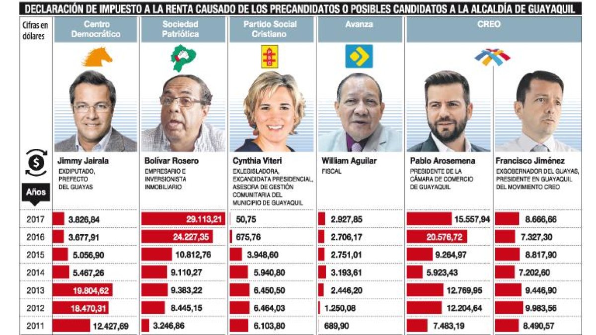 La lista crecerá. Los tres precandidatos oficiales a la Alcaldía de Guayaquil tendrán al menos la compañía de otros cuatro prepostulantes para las elecciones seccionales de marzo de 2019.