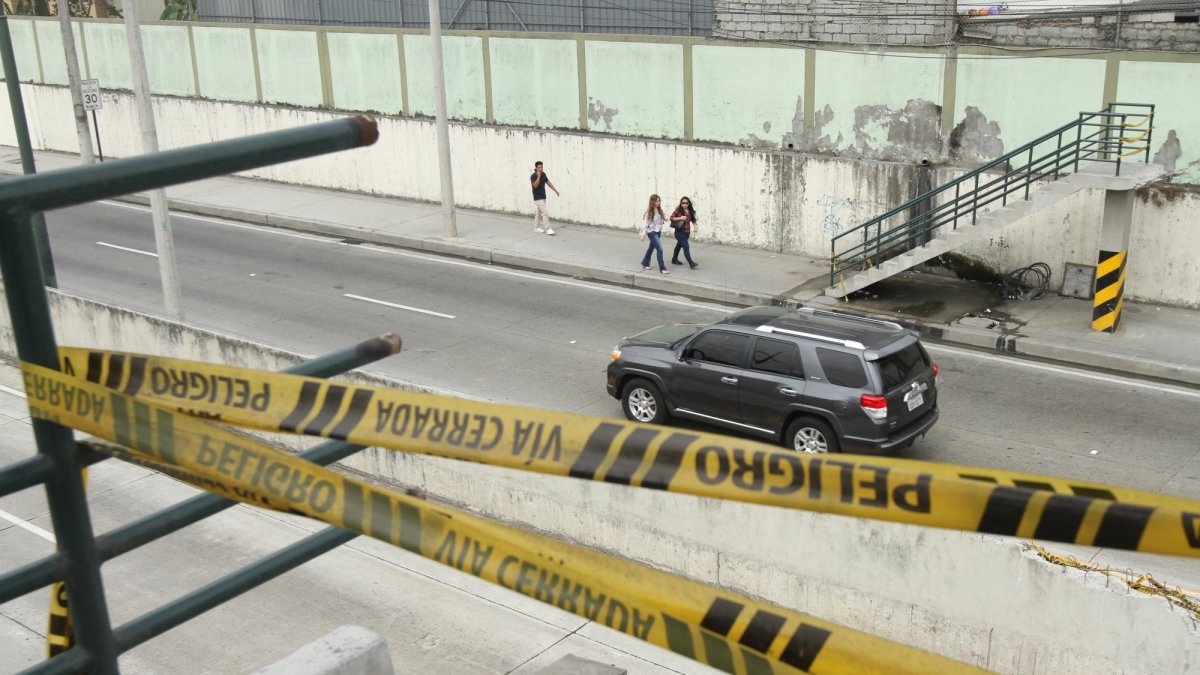 Está por cumplirse cuatro meses desde que una plataforma que transportaba una retroexcavadora ocasionara daños estructurales al paso peatonal elevado de la avenida del Bombero, a la altura del Riocentro Los Ceibos.