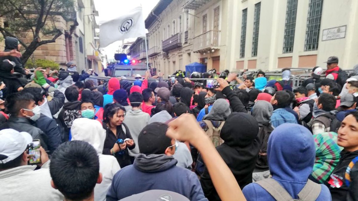 #RuedaDePrensa | @xaesma informó que como resultado de las protestas violentas existen 12 miembros de @PoliciaEcuador con lesiones. Se tiene información de actos vandálicos de infiltrados con armas blancas y de fuego en las manifestaciones. #EcuadorPaísDePaz pic.twitter.com/79iVgYndQs