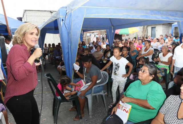 a excandidata presidencial conversó con EXPRESO luego de explicar brevemente el contenido de las preguntas a un grupo de habitantes de la 21 y Oriente, en el suburbio de Guayaquil.