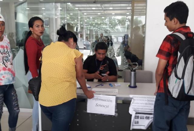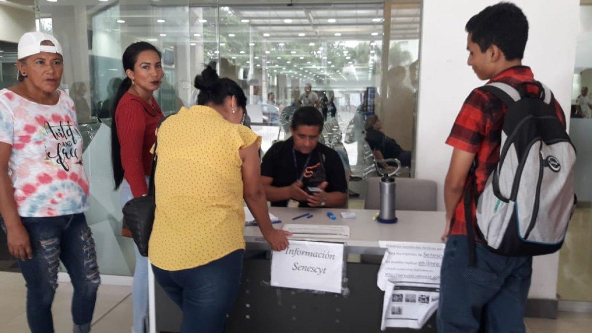 Decenas de jóvenes acuden al punto de atención instalado por la Secretaría de Educación Superior, Ciencia, Tecnología e Innovación (Senescyt) para conocer sobre el tercer proceso de postulación para ingresar al sistema de educación superior. La oficina está ubicada en los bajos del Edificio Público del Sector Social, en la avenida Plaza Dañín, junto al centro comercial Plaza Quil.
