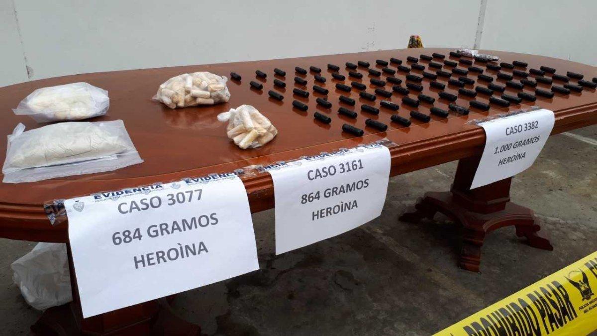 “La heroína tiene muchas aprehensiones acá, lo que se conoce como la h, tiene grandes cantidades y eso nos lleva al análisis... a establecer nuevas estrategias para el año que viene”, manifestó el coronel Walter Villarroel, jefe de Antinarcóticos de la Zona 8 (comprende Guayaquil, Durán y Samborondón).