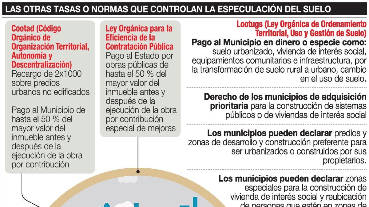 Jaime Rumbea, representante de los Promotores Inmobiliarios (Apive), recuerda que hay otras normas y tasas que regulan y gravan el negocio inmobiliario para controlar la especulación del suelo (ver gráfico). Entre ellas, y el avalúo catastral actualizado, los municipios pueden obtener recursos, como se hace en otros países.