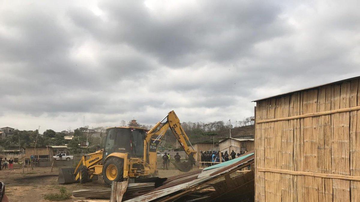 Entre lágrimas, gritos y abrazos de algunos de sus ocupantes, 100 viviendas fueron derribadas la mañana de este miércoles 20 de noviembre en la cooperativa Promesa de Dios, del sector Monte Sinaí, en el noroeste de Guayaquil.
