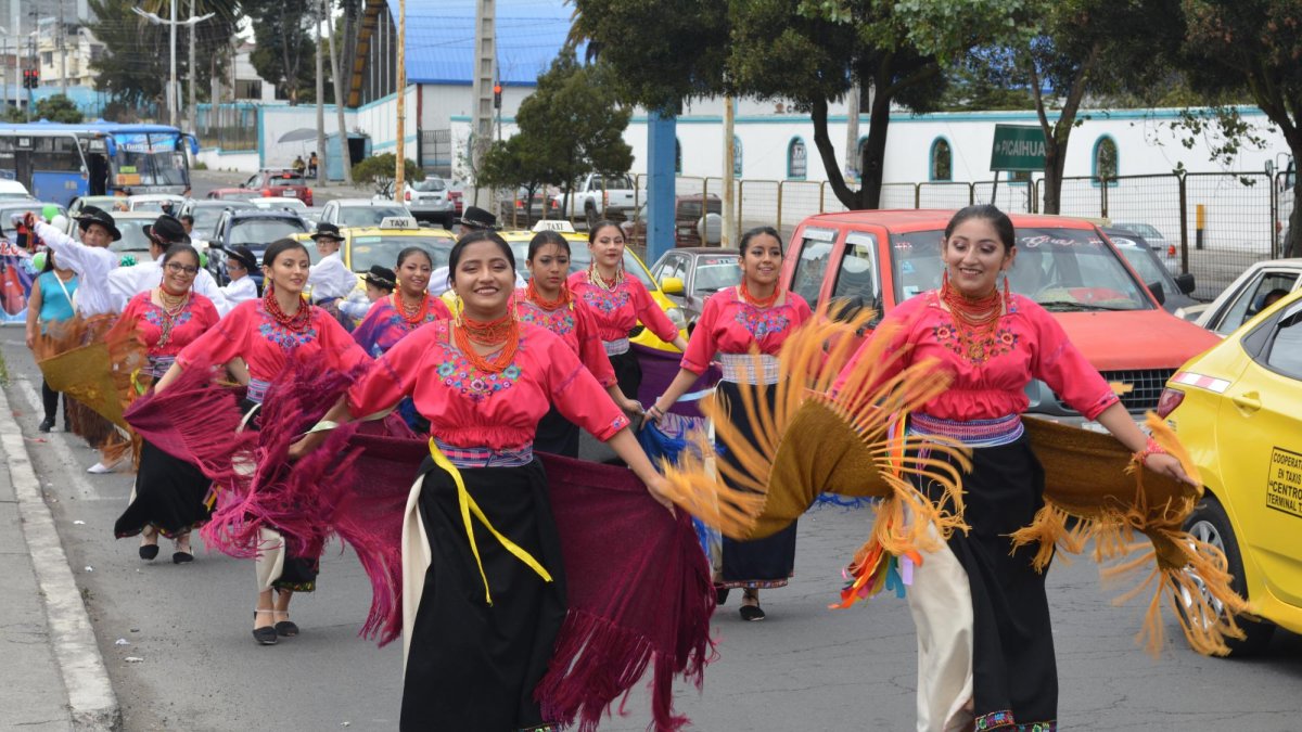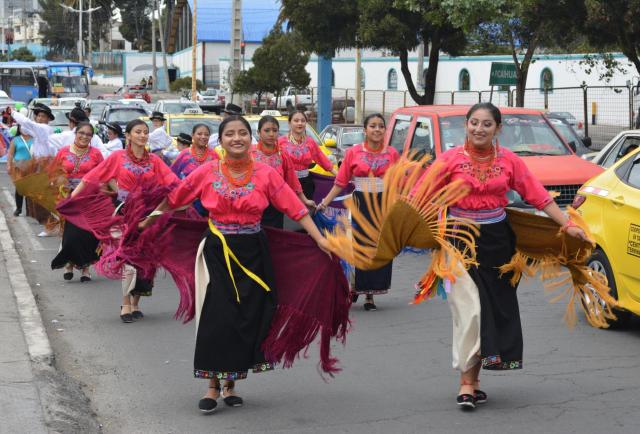1. Folclor. La fiesta se realiza en homenaje a la Santísima Virgen de La Merced, por dos días. El vestuario es muy llamativo para esta presentación. Las mujeres portan canastos y sacos con pétalos de rosas, con los que ‘bañan’ a la imagen de madera. 2. Figura. El personaje de la Mama Negra y su inseparable muñeca Baltazara llevan coloridos atuendos en el desfile.