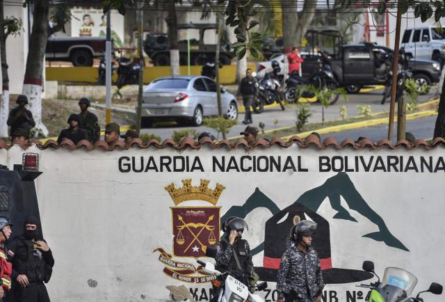 Algunas unidades de las fuerzas de seguridad venezolanas se encontraban en los alrededores de la unidad militar y bloqueaban vías principales cercanas desde primeras horas del día, según fotos y reportes en redes sociales.