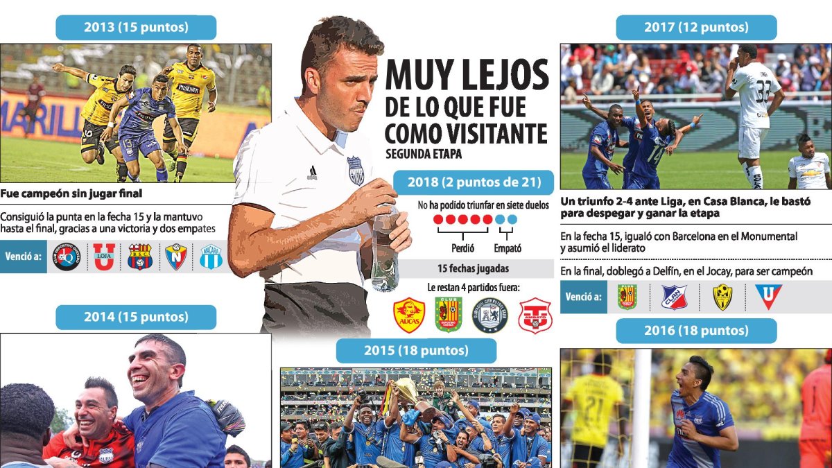 Las fechas se acaban y las necesidades aumentan. Emelec, sin poder triunfar como visitante en esta etapa, deberá imponerse en uno de los cuatro duelos que le restan fuera de casa, no solo para mantener sus posibilidades de llegar a la final, sino para igualar las últimas cinco campañas, en las que fue protagonista gracias a varias sorpresas a domicilio.