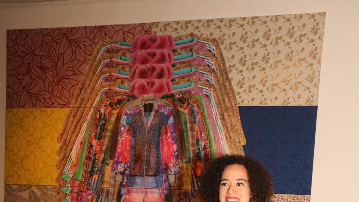 Asimismo, la obra se compone de 60 piezas donde resaltaron prendas femeninas y cortinas, esta fue impreso en lienzo y luego superpuesta e intervenida con acrílico y pintura textil.