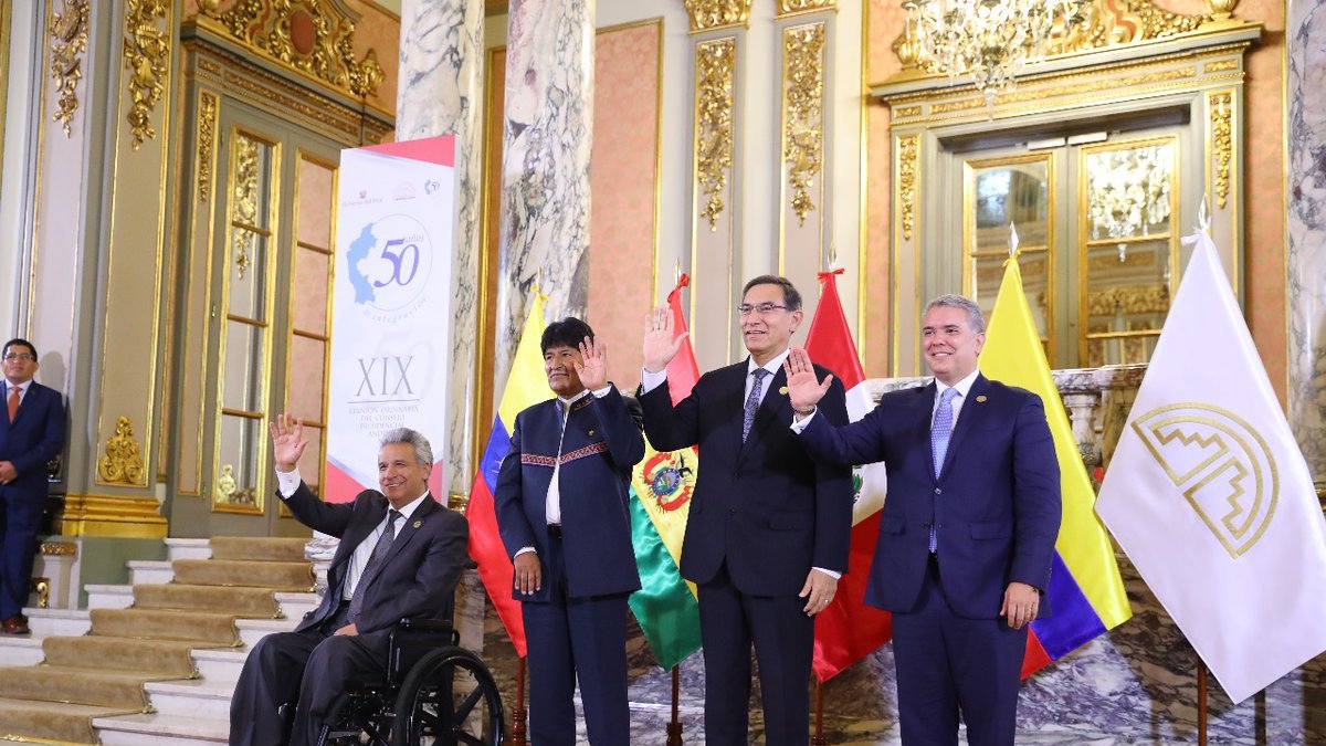 Evo Morales (Bolivia), Iván Duque (Colombia), Martín Vizcarra (Perú) y Lenín Moreno (Ecuador) suscribieron acuerdos en el marco del 50 aniversario de creación del bloque regional