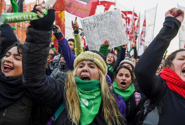 Tras la aprobación, miles de pañuelos verdes -símbolo local de aval a la causa- flamearon en apoyo a la legalización del aborto hasta la decimocuarta semana de gestación inclusive, una iniciativa impulsada como parte de la creciente lucha por los derechos de las mujeres en Argentina.