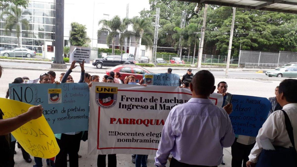 Lo hicieron para denunciar el supuesto irrespeto y burla que son objeto miles de docentes a contrato y nombramiento provisional, a quienes se les estaría negando su elegibilidad, mediante el Acuerdo 0027 firmado por el exministro de Educación, Milton Luna.