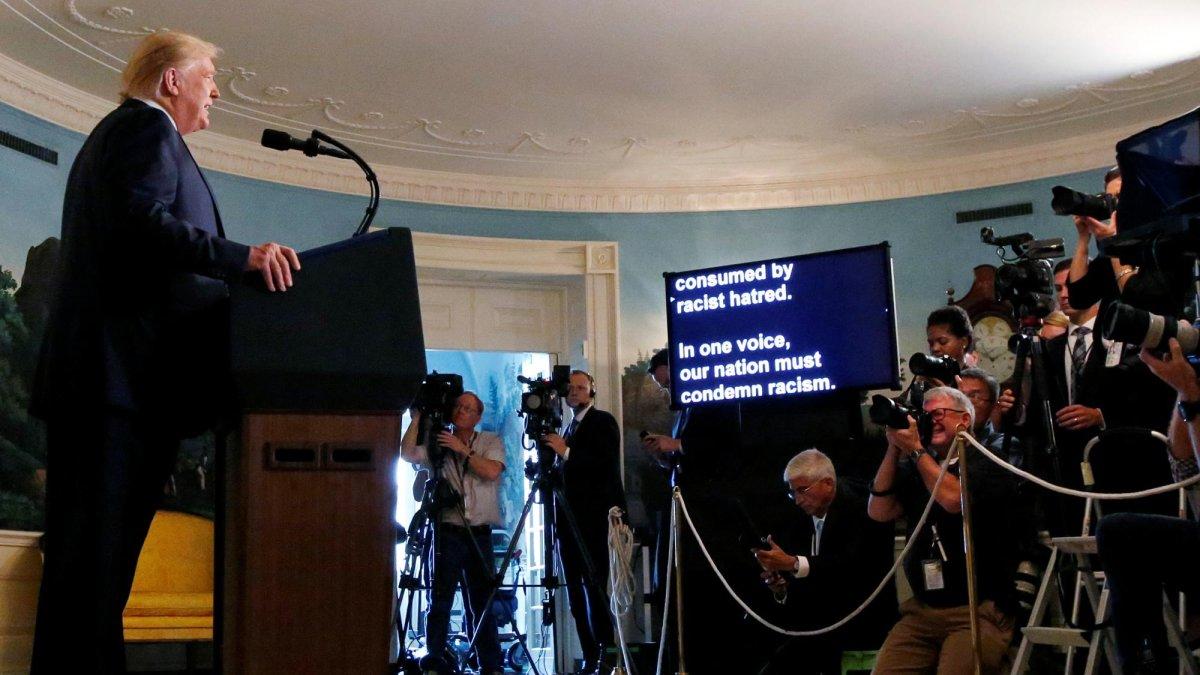 “Con una sola voz, nuestra nación debe condenar el racismo, el fanatismo y el supremacismo blanco”, afirmó Trump en una declaración desde la Casa Blanca tras los tiroteos registrados el fin de semana en El Paso (Texas) y Dayton (Ohio), que dejaron 29 víctimas mortales.