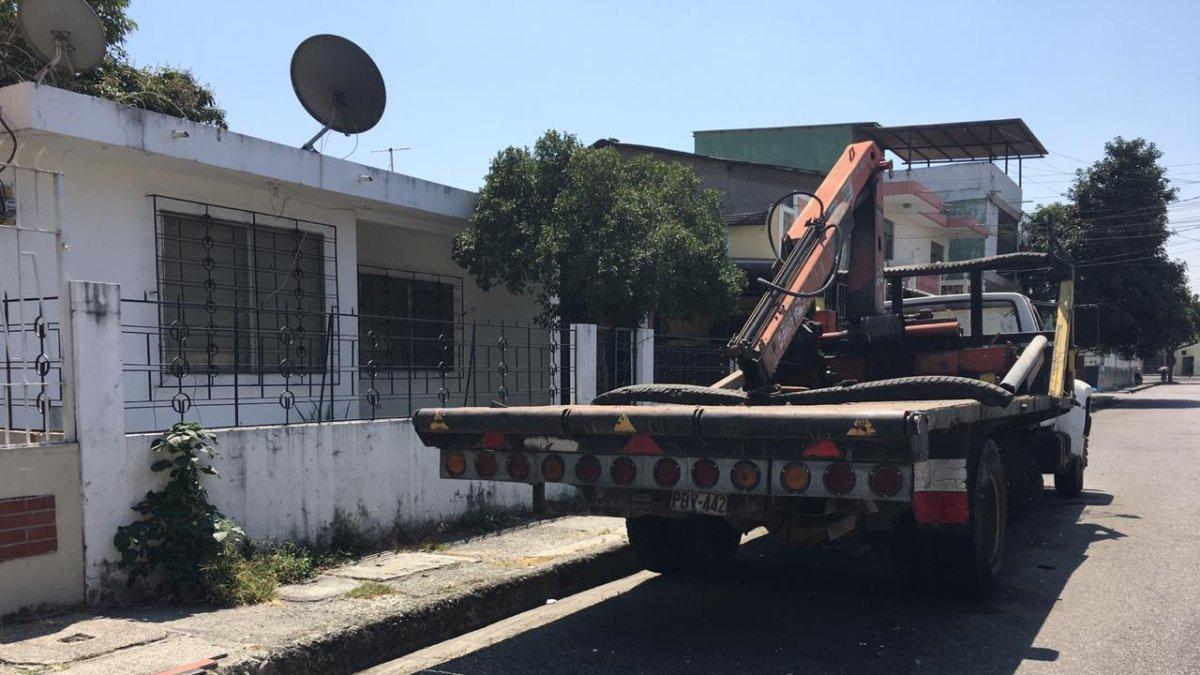 Un auto Mazda color blanco y un camión de carga pesada preocupan a los residentes y transeúntes de la ciudadela Ferroviaria, situada al pie de la avenida Barcelona, en Guayaquil.