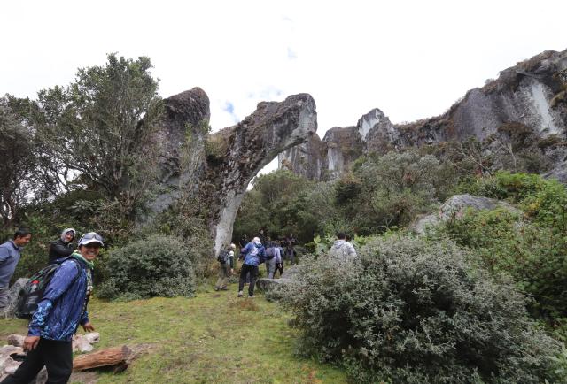 Carachula no se limita a la leyenda. Es un territorio cargado de energía. Los tres mundos andinos -Hanan Pacha (mundo superior), Kay Pacha (mundo terrenal) y Ukhu Pacha (mundo interior)- parecen dispersos entre las rocas como guardianes silenciosos. Hay formaciones que recuerdan iglesias, cúpulas, nichos imposibles.