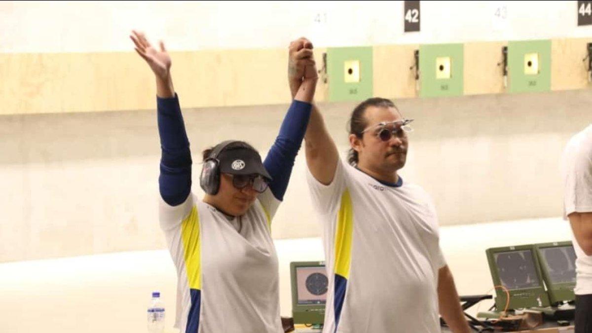 Marina Pérez y Yautung Cueva se ubicaron terceros en la prueba de los 10 metros pistola de aire mixto de tiro olímpico en los Juegos Panamericanos 2019.