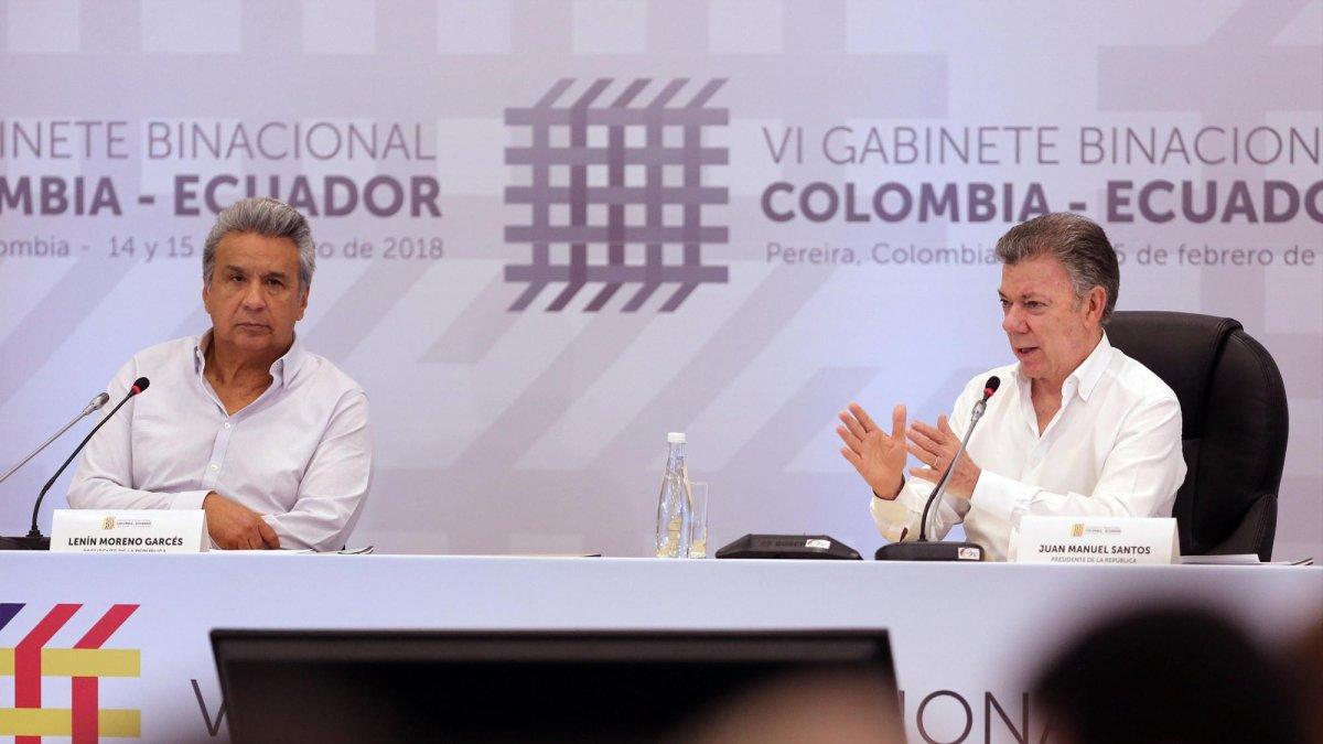 Los presidentes de Colombia, Juan Manuel Santos, y de Ecuador, Lenín Moreno, instalaron el mismo 15 de febrero en Pereira el VI Gabinete Binacional en el que se analizará la situación en la frontera, la cooperación, el intercambio comercial y la seguridad, entre otros temas.