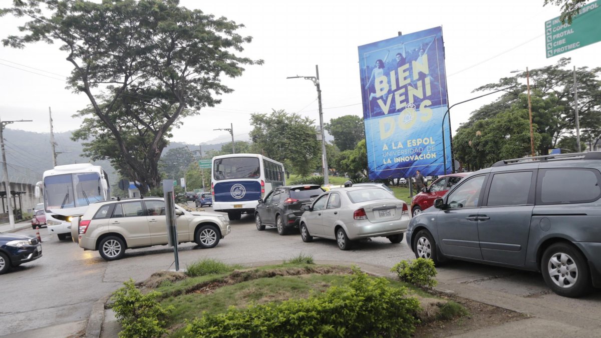 Vehículos entrecruzados con la intención de avanzar, el uso excesivo de la bocina y transeúntes con dificultades para cruzar. Así comienzan las actividades en las inmediaciones del campus Prosperina de la Escuela Politécnica del Litoral (Espol).