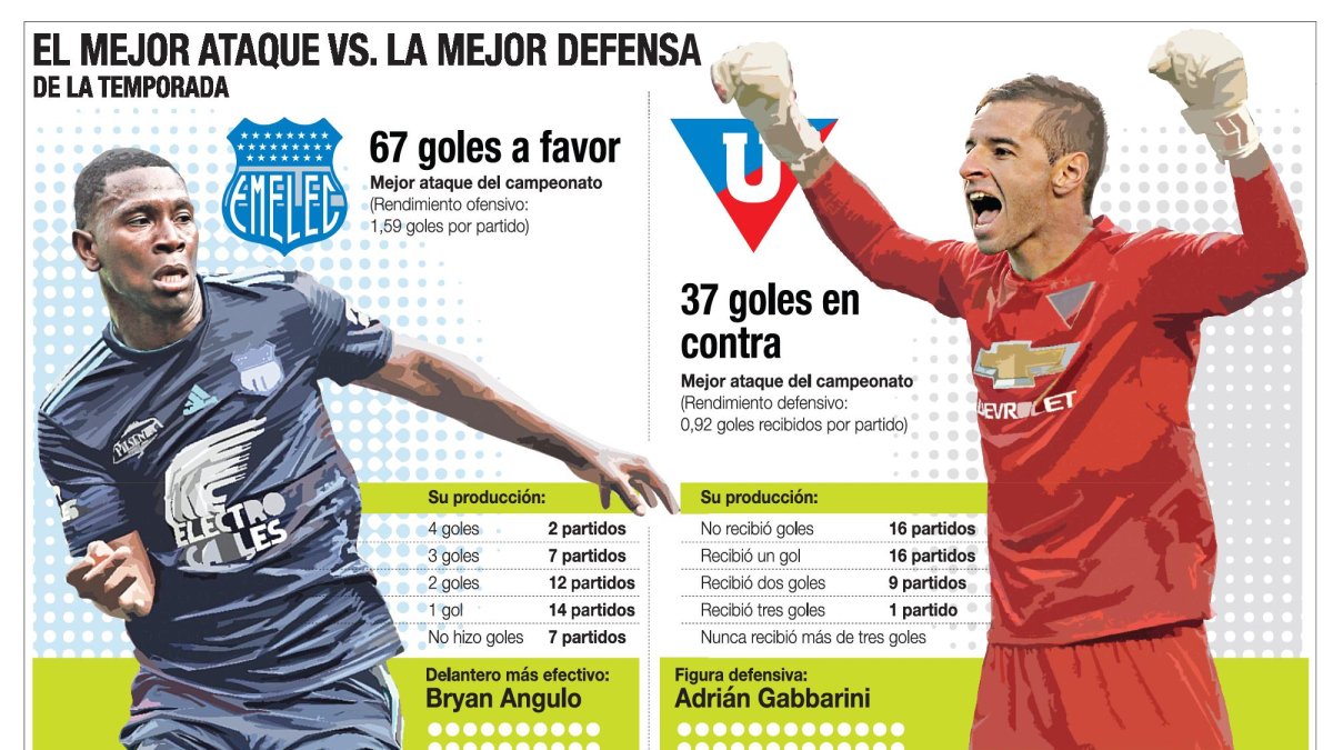 Los azules son ofensivos. Con 67 tantos, comparten la mejor delantera con Barcelona y Universidad Católica. Mientras, los albos tienen la mejor defensa. Apenas han recibido 37 goles en las 42 fechas.