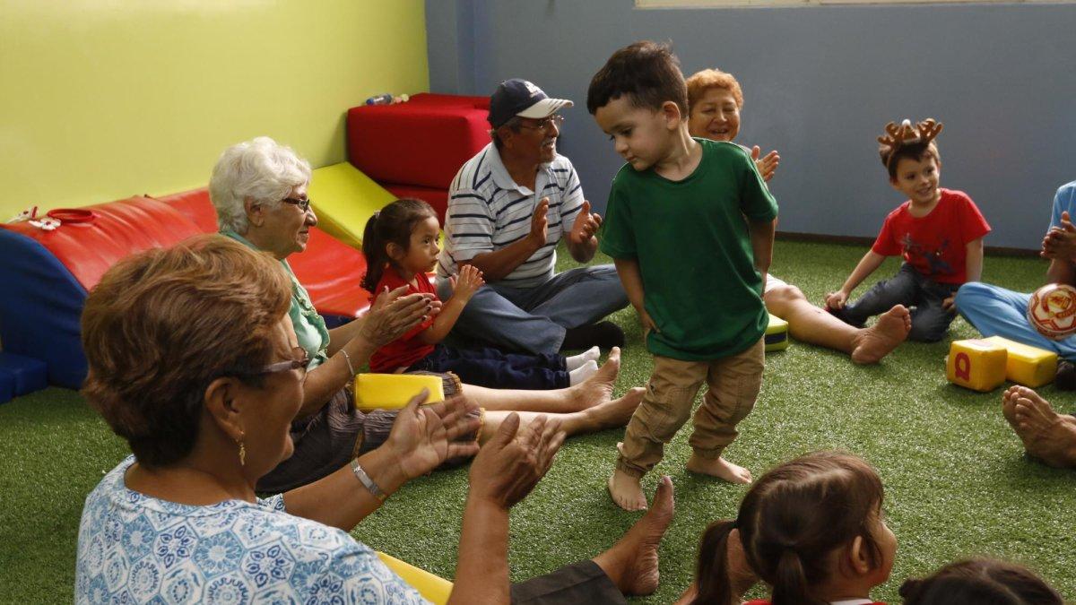En un centro gerontológico conviven niños de tres y abuelos de 65 años. El ejercicio intergeneracional se desarrolla desde esta semana en Las Orquídeas.