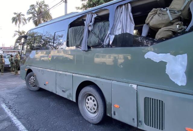 La Conaie denunció que "15 militares agredieron a un adolescente, dejando al menos 21 heridos y cuatro detenidos". Las Fuerzas Armadas, en cambio, reportaron que "grupos violentos atacaron al personal militar con artefactos y armas improvisadas, entre ellas bombas molotov, voladores, catapultas, lanzas, palos con puntas metálicas, piedras, machetes y cuchillos". Tras el enfrentamiento, "un soldado resultó herido con un arma cortopunzante" y existen vehículos militares con daños.