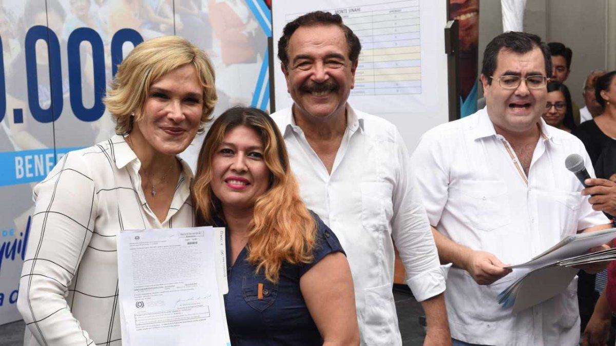 El alcalde saliente, Jaime Nebot, estuvo presente en esta, que es una de las últimas ceremonias públicas con tal dignidad. También la acompañó la alcaldesa electa Cynthia Viteri, que se comprometió a continuar con la etapa 3 de estos planes habitaciones.