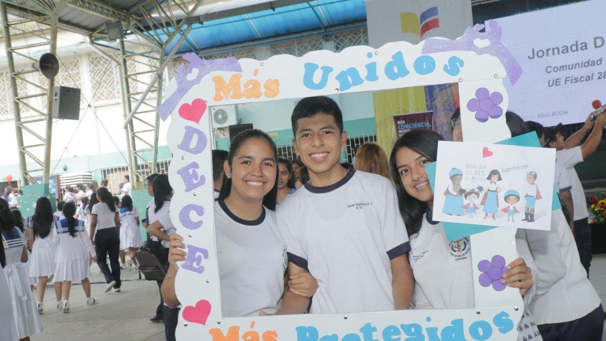 Jean Pierre Castro, presidente del Consejo Estudiantil e integrante del equipo antiviolencia del colegio réplica Guayaquil, explica que el rol de los estudiantes es generar alertas y denunciar cualquier tipo de agresión dentro y fuera de la institución. “La campaña nos permite ser partícipes y ayudar con nuestras alertas o denuncias a un compañero que esté pasando por temas de acoso o abuso”, enfatiza.