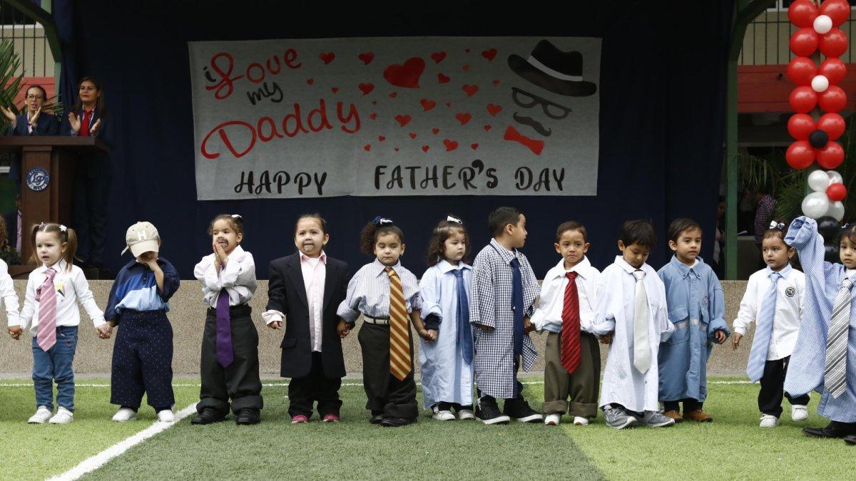 Los ojos de los padres se iluminaron cuando sus hijos del preescolar realizaron la coreografía Yo quiero ser como mi papá. Vestidos con camisas largas, corbatas y zapatos grandes que habían sacado del closet de su padre y luciendo barbas o bigotes artificiales en sus rostros, los niños mostraron sus dotes artísticos para rendirle homenaje a ese ser que todos los días los lleva a la escuela y los cuida, al igual que lo hace su mamá.