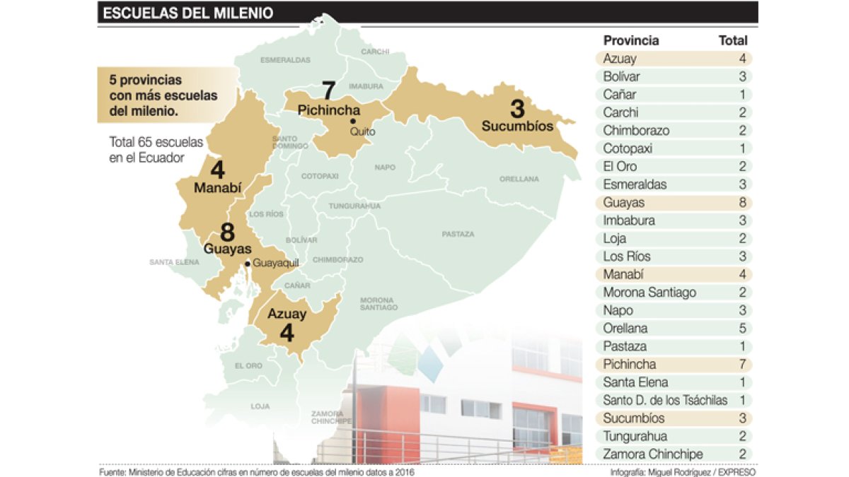 El resultado de la pomposidad arquitectónica es negativo. Solo el 3,6 % de población estudiantil fiscal se educa en una escuela del milenio.