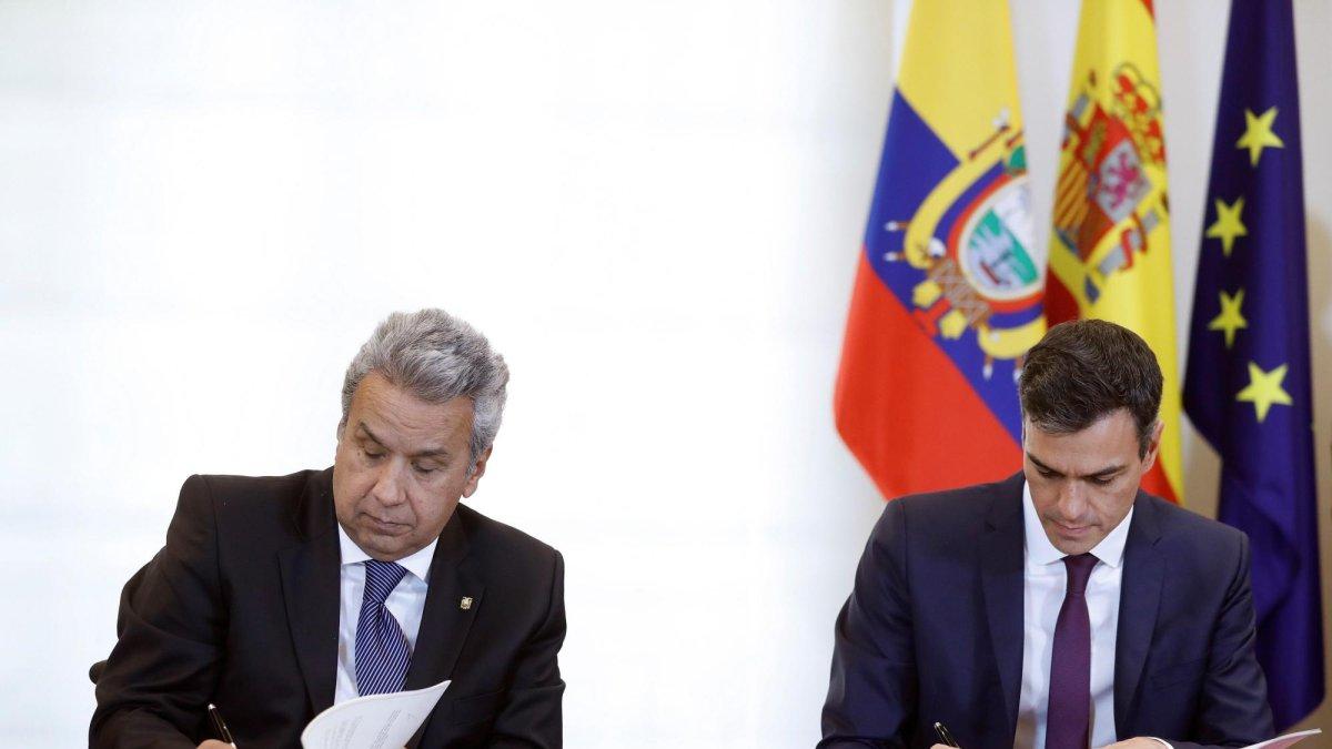 El jefe del Gobierno de España, Pedro Sánchez, y el presidente de Ecuador, Lenín Moreno, sellaron este acuerdo durante el encuentro que mantuvieron hoy en Madrid, en el que además se comprometieron a seguir fortaleciendo la relación bilateral en todos los ámbitos.