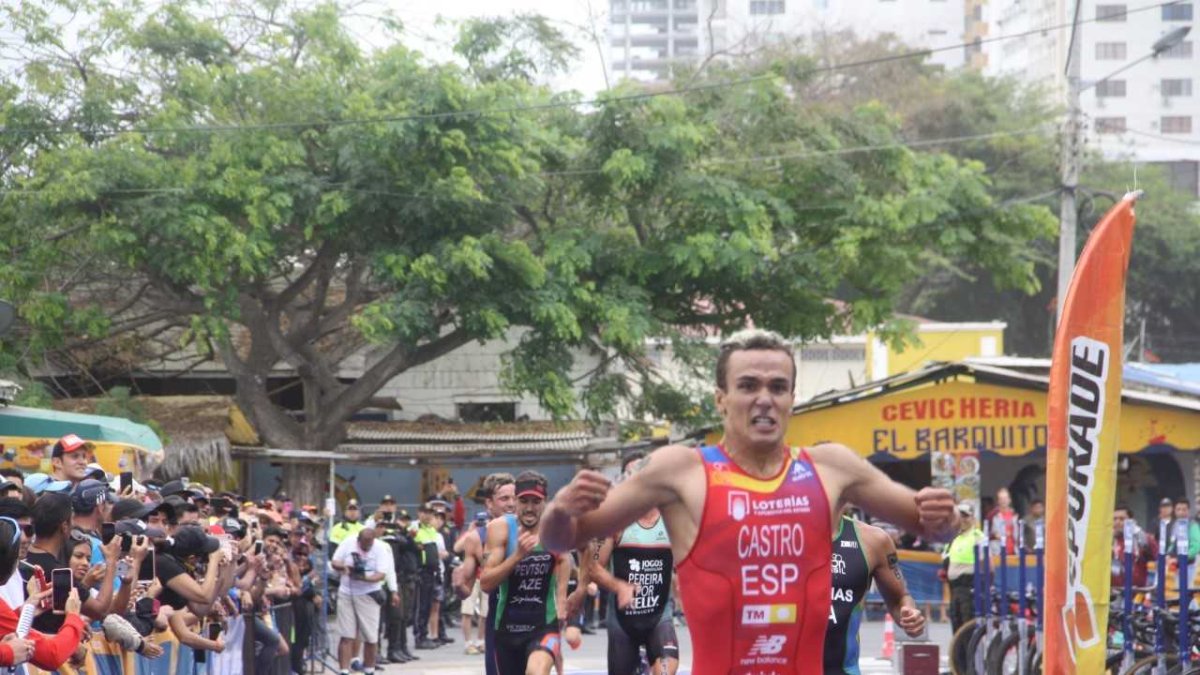 Derramando sudor y lágrimas llegó a la meta el español, David Castro de 27 años, que la mañana del domingo 21 de octubre ganó la Copa Mundo de Triatlón Salinas 2018.