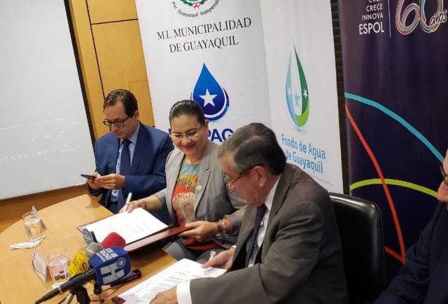 Este 22 de mayo, a las 09:30, la Escuela Superior Politécnica del Litoral (Espol) firmó como socio estratégico, en el campo académico, con el Fondo de Agua de Guayaquil, con el objetivo de sumar esfuerzos por la conservación de la cuenca del río Daule.