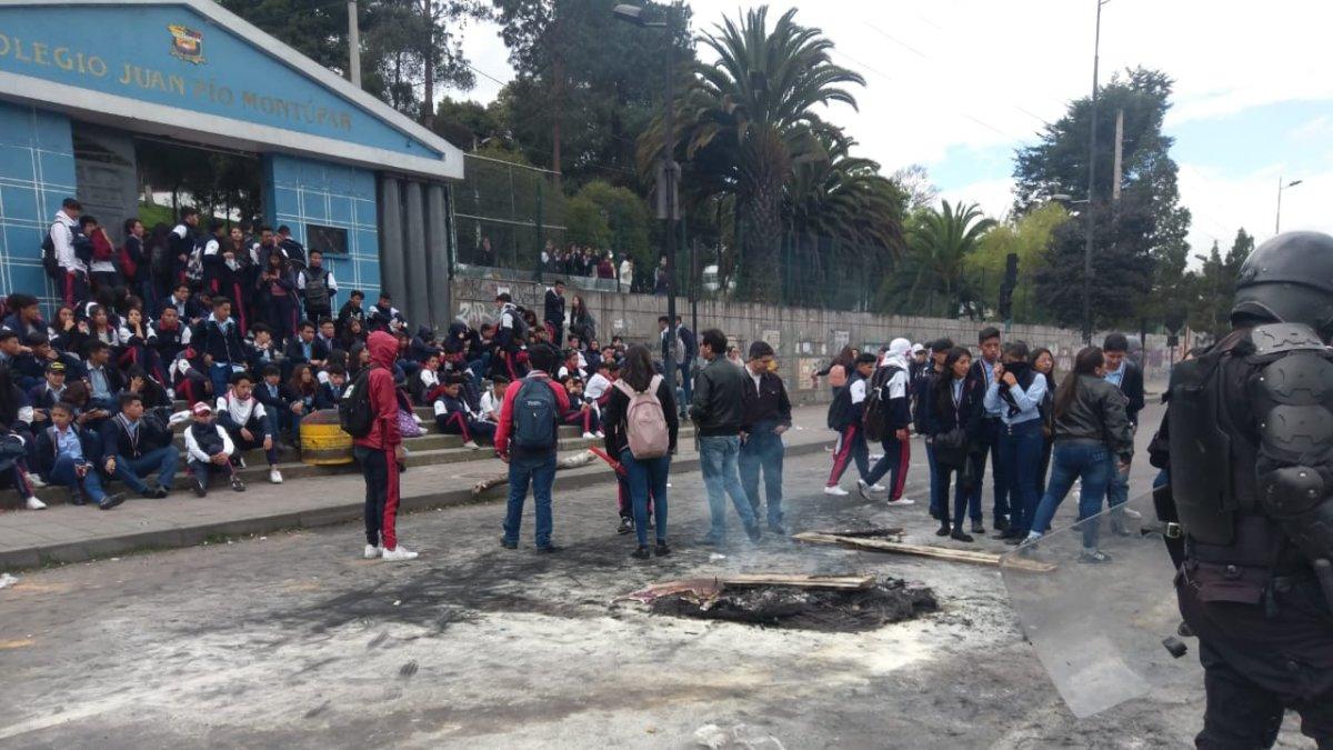 Estudiantes del colegio Montufar intentaron bloquear la avenida Napo