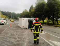Quito Un camión se volcó en la Ruta Viva y provocó un herido El camión peridó el carril de circulación y se volcó