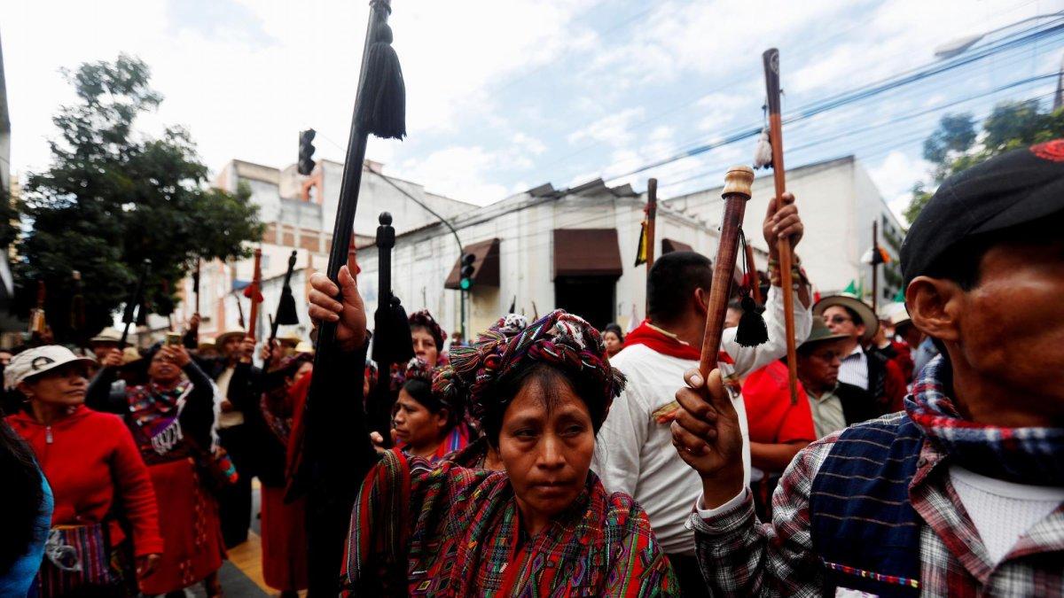 Miles de indígenas y campesinos guatemaltecos protestaron este martes 15 de enero de 2019 en la capital y otras regiones del país para exigir la renuncia del presidente Jimmy Morales, acusado de detener la lucha contra la corrupción tras el intento de cerrar una misión antimafias de la ONU.