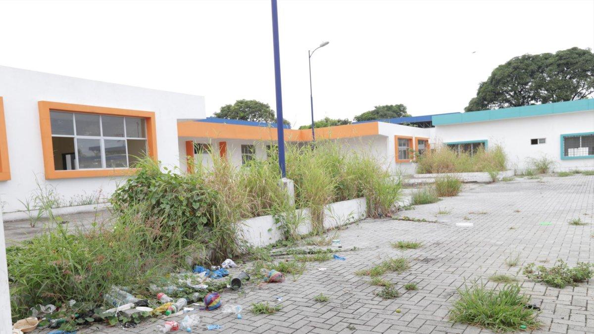 Lo que sí salta a la vista, aún desde afuera de la edificación, es la maleza que ha crecido por la lluvia y la falta de desbroce; así como los desechos que facilitan criaderos de insectos.