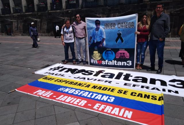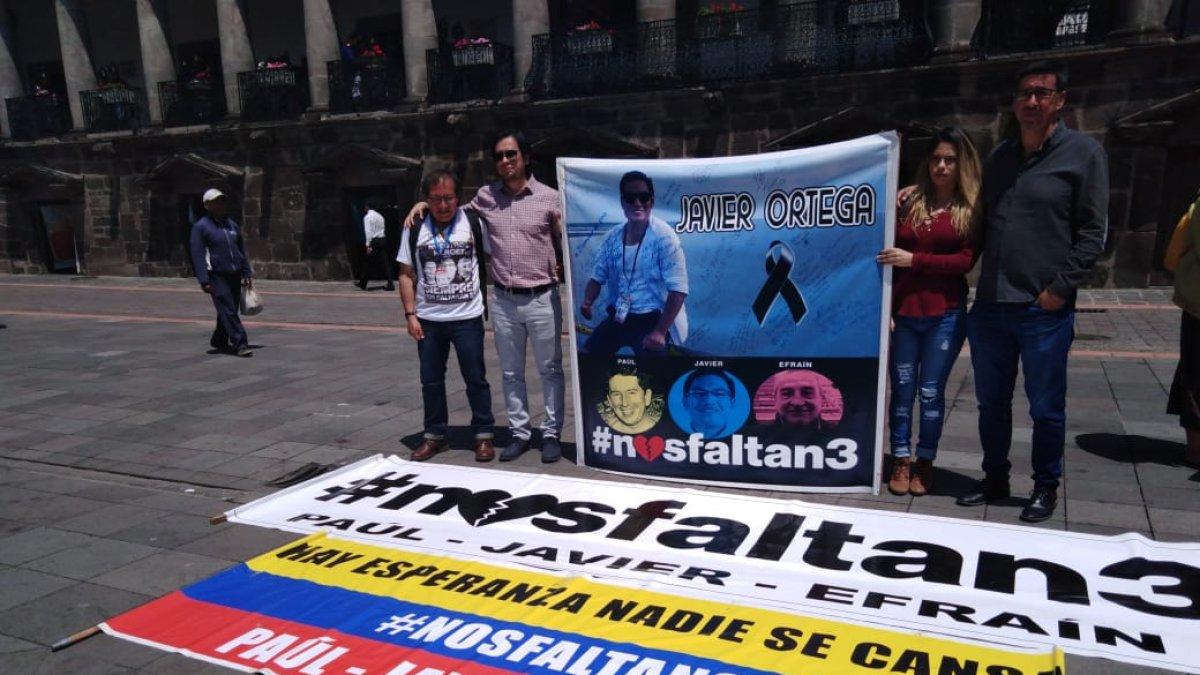 A la Plaza Grande, en Quito, llegaron los familiares de los integrantes del equipo periodístico de El Comercio para reiterar sus pedidos de investigación y esclarecimiento de los hechos, cuando se cumple un año de su plagio en la frontera.