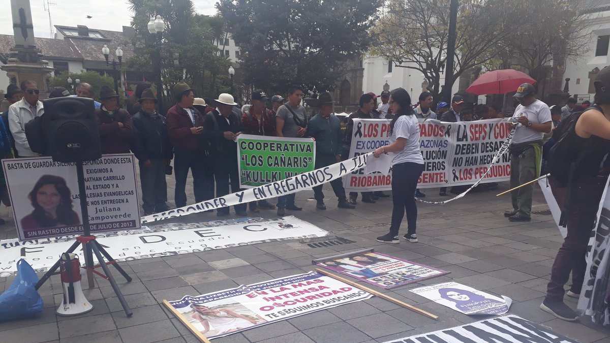 El 10 de diciembre, fecha en la que se conmemora el Día Internacional de los Derechos Humanos, allegados de Juliana Campoverde se juntaron en la Plaza Grande para una toma simbólica de ese espacio público.