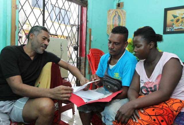 Su llegada fue dolorosa. Tres años pasó sin saber de su esposa e hijos, antes de poder traerlos a Ecuador. La desesperación de no saber cómo sobrevivían en la frontera lo angustiaba. Hoy, su hogar está estable, al igual que su trabajo como machetero en una plantación de palma.