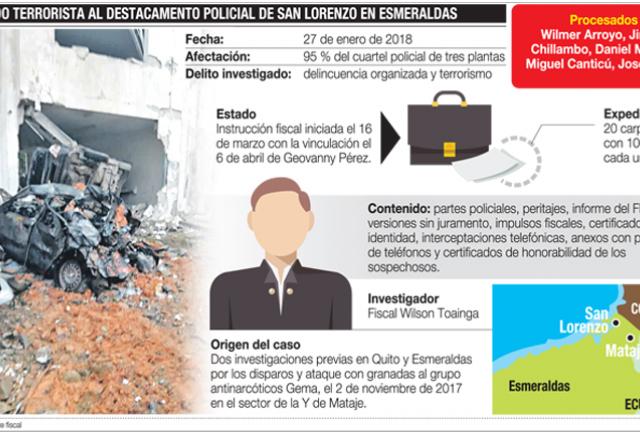 La Fiscalía alista la vinculación de Walther Arízala, alias Guacho, a la instrucción fiscal por delincuencia organizada y terrorismo que investiga el atentado con coche bomba que destruyó el destacamento policial de San Lorenzo el 27 de enero de este año.