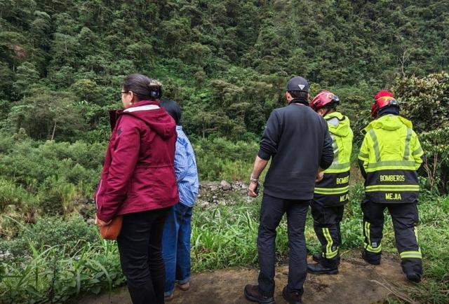 El Cuerpo de Bomberos de Mejía también participa en la búsqueda. Los socorristas indicaron ayer que realizan "recorridos terrestres y sobrevuelos con aeronaves no tripuladas" (drones) para ampliar la zona de la inspección, ya que el sitio es de difícil acceso.