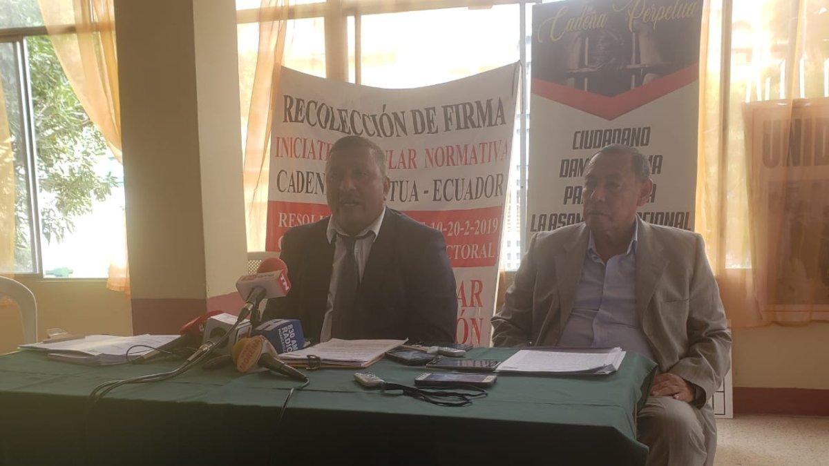 Iván Oyarvide, presidente del frente, informó que el pasado 26 de marzo recibieron los formulares del organismo electoral para recoger las más de 32 mil rúbricas necesarias para que la iniciativa pase a la Asamblea Nacional para su debate. “Los verdaderos criminales son los que se han llevado miles de millones de dólares del país”, comentó Oyarvide quien estima recoger 100 mil firmas.