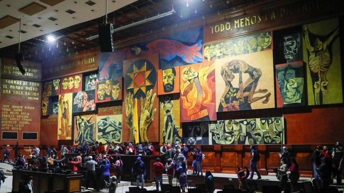 La actividad en la sede parlamentaria se encontraba suspendida este martes. La sede se encuentra cerca de un parque de Quito que servía este martes de lugar de concentración a unos 10.000 miembros de colectivos indígenas, en la víspera de una marcha con la que esperan la derogación de recientes medidas económicas o la salida del presidente Lenín Moreno.