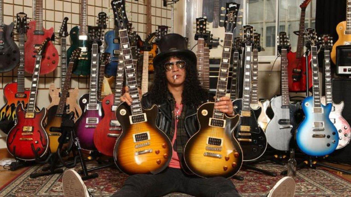 Entre los músicos que han usado las guitarras Gibson, tanto eléctricas como acústicas, está Slash.
