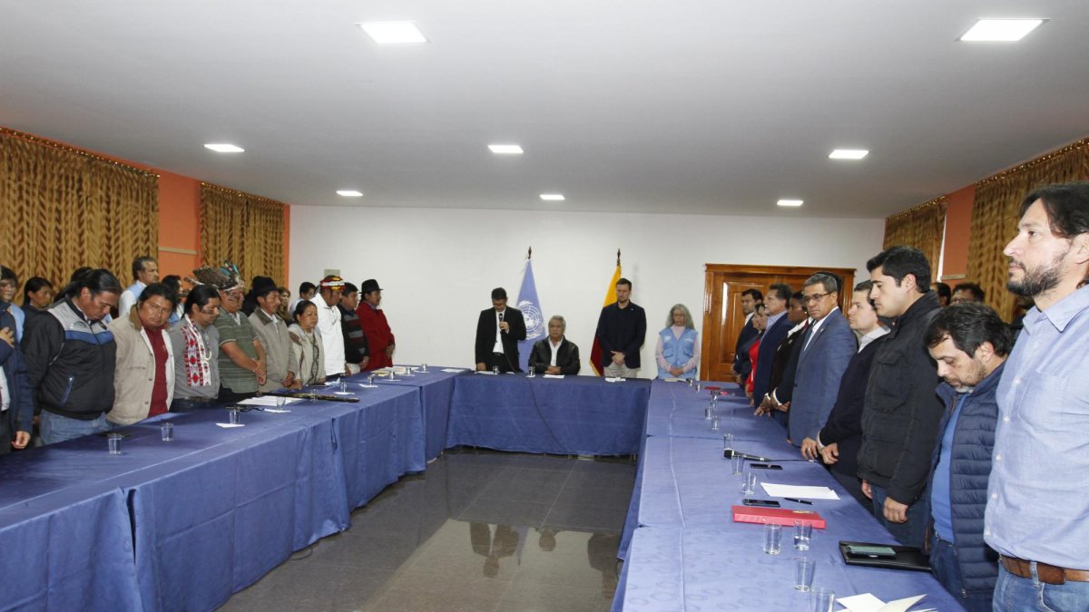 El coordinador residente del Sistema ONU en Ecuador, Arnaud Peral, fue quien leyó la resolución del acuerdo después de un receso de dos horas, tras la reunión de hora y media en la que ambas partes expusieron sus posiciones. La decisión arrancó aplausos de los asistentes, al término del encuentro de cuatro horas en el que el presidente Lenín Moreno y los dirigentes se comprometieron a trabajar por la paz.