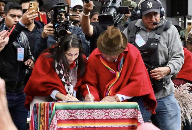El 30 de marzo de 2025, a 12 días del balotaje de abril, en Tixán —parroquia del cantón Alausí (Chimborazo)—, Pachakutik y el correísmo firmaron un acuerdo programático. Aunque la convocatoria para la firma estuvo a cargo de Guillermo Churuchumbi, coordinador nacional de PK, la ausencia de Iza fue uno de los aspectos más comentados.